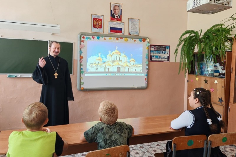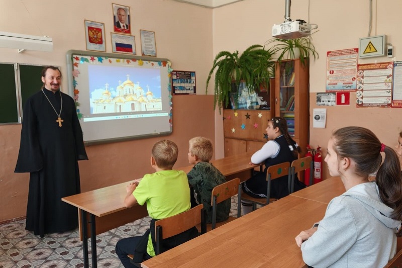 11 сентября, в день памяти Усекновения Главы Пророка, Предтечи и Крестителя Господня Иоанна, благочинный Россошанского церковного округа, настоятель Михайло-Архангельского храма с. Нижний Карабут священник Виталий Макаров посетил сельскую школу.