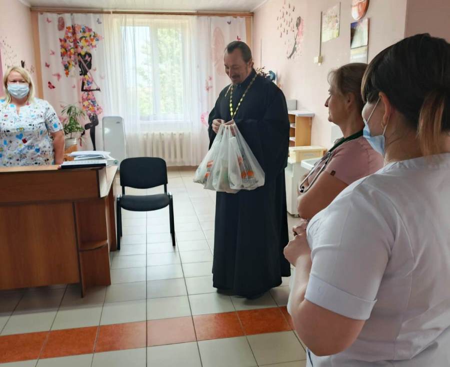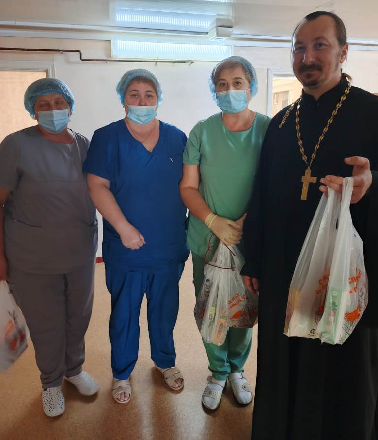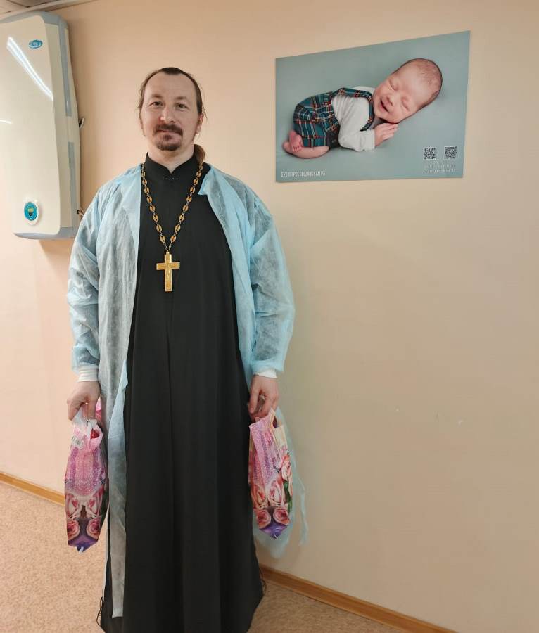 Священнослужитель поздравил маленьких пациентов инфекционного и детского отделений, а также мам с новорожденными в роддоме с Днем защиты детей и передал подарки, собранные социальным отделом при поддержке магазина «Детский мир».