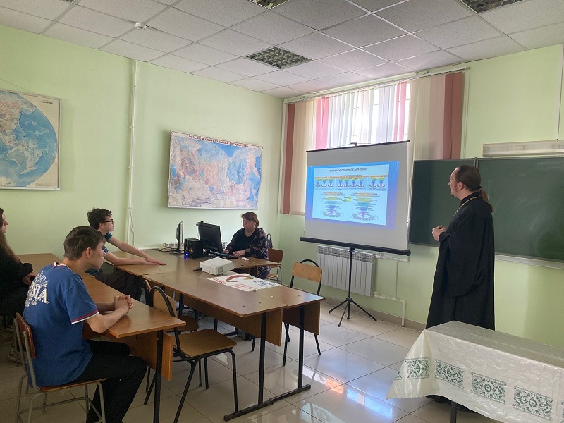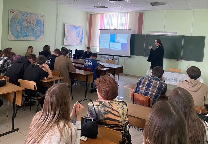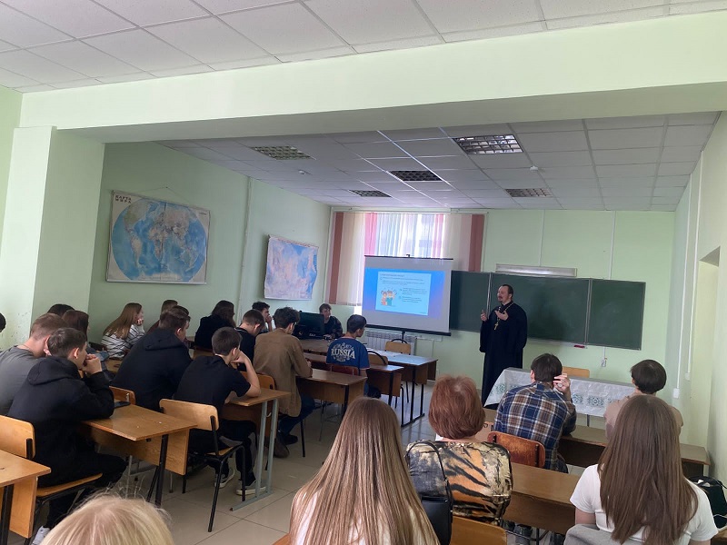 23 мая, в преддверии Дня славянской письменности и культуры, благочинный Россошанского церковного округа, руководитель епархиального миссионерского отдела священник Виталий Макаров по приглашению педагога Россошанского экономико-правового колледжа Шаповаловой Галины Константиновны провел встречу со студентами.