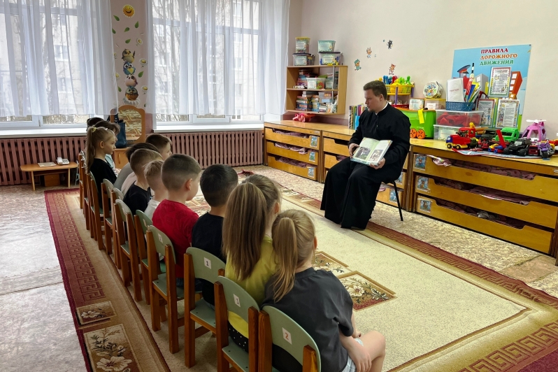 17 марта, во вторник, диакон Марк Мясоедов, ключарь Свято‑Ильинского кафедрального собора, посетил МКДОУ «Детский сад № 7».