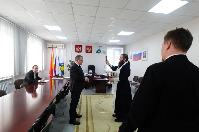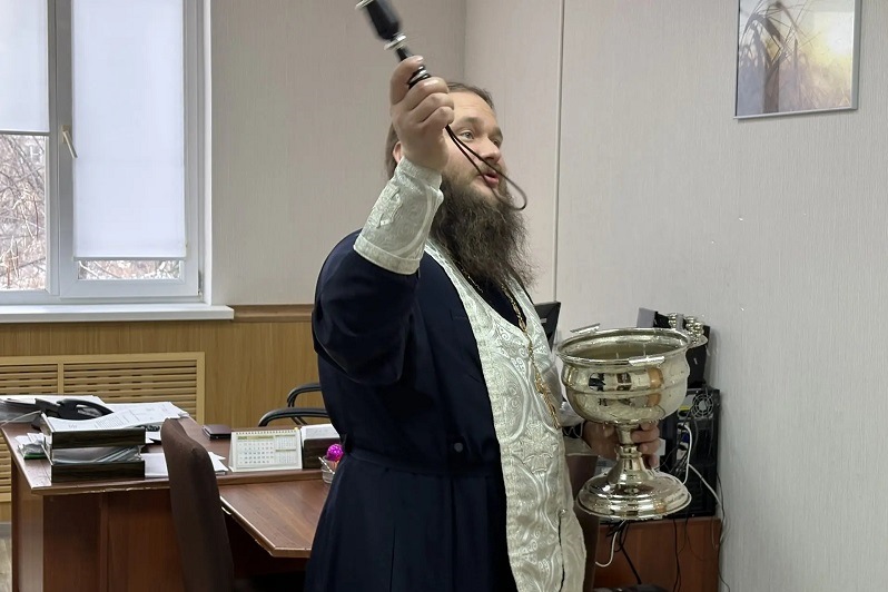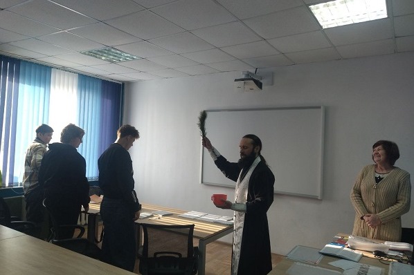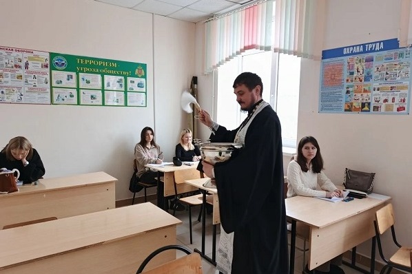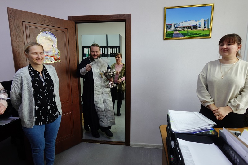 Священники поздравили всех присутствовавших с праздником Богоявления и окропили святой водой сотрудников организаций, учреждений, студентов, преподавателей, а также помещения и учебные аудитории.