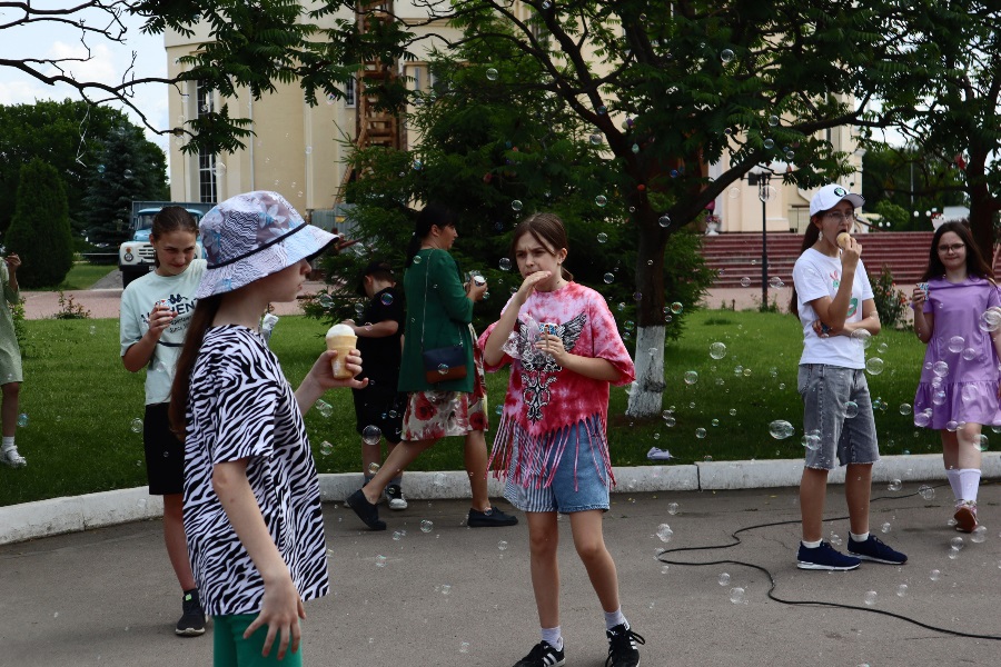 Для детей была подготовлена насыщенная программа. После торжественной линейки ребят встречали веселые аниматоры детского комплекса «Изумрудный», проводились игры и конкурсы. Особенной радостью стало мороженое, которое стало вкусным символом начала лета.