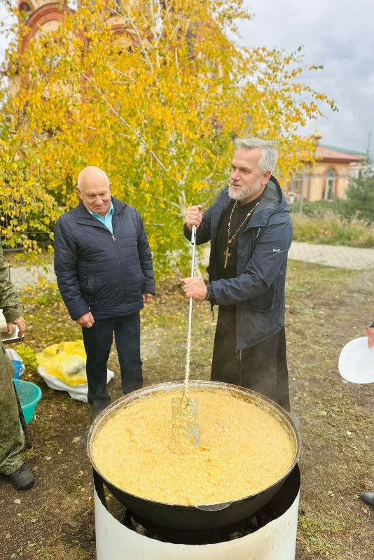 Все присутствующие смогли приобрести продукты питания домашнего изготовления, изделия мастеров прикладного искусства, принять участие в плетении маскировочных сетей, дети смогли повеселиться с аниматорами. А затем все были приглашены на казачью полевую кашу, которую приготовили казаки станицы Новокалитвенской.