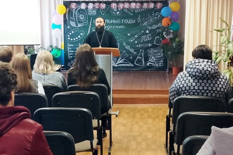 По приглашению руководства школы собрание посетил настоятель храма Преображения Господня иерей Димитрий Уваров.