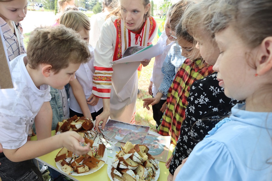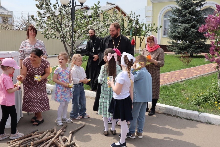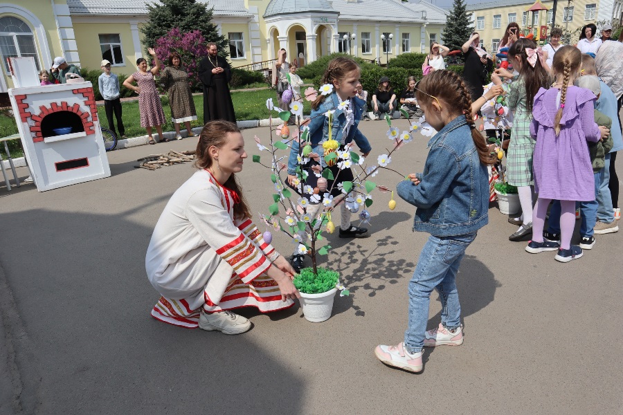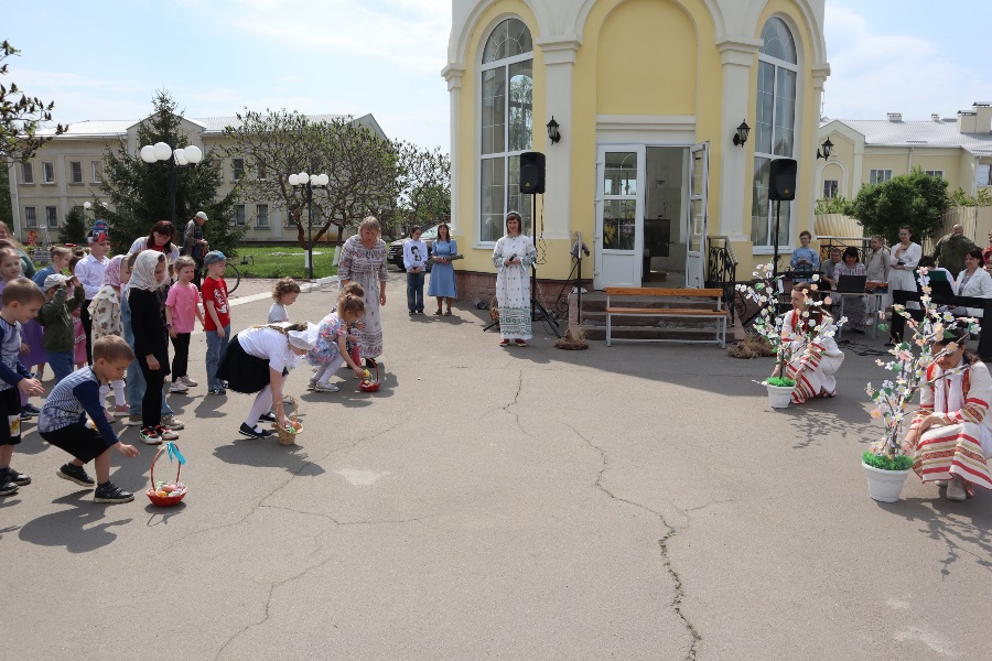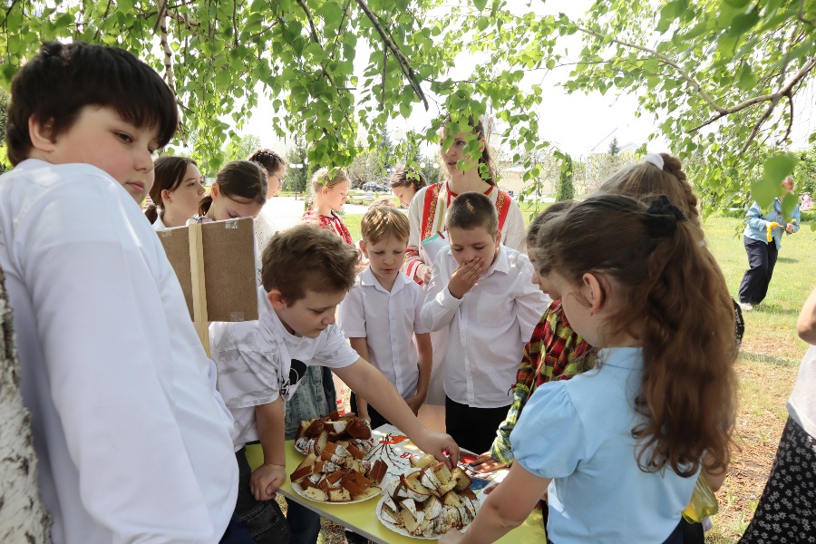 26 мая в воскресной школе «Добро» Ильинского кафедрального собора состоялся Пасхальный праздник. Ребята и учителя подготовили интерактивное театральное представление по мотивам русской народной сказки «Гуси-лебеди». Участниками представления стали зрители, которые помогали носить дрова для печки, украшать яблоню пасхальными яичками, расчищать протоки реки. А затем состоялась игра «В поисках благовестий Воскресения Христова», в итоге которой все получили билет на колокольню Ильинского кафедрального собора, чтобы пасхальным трезвоном славить Воскресшего Спасителя.