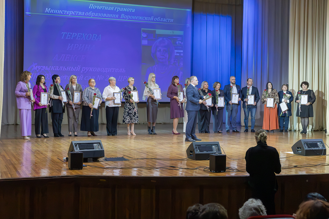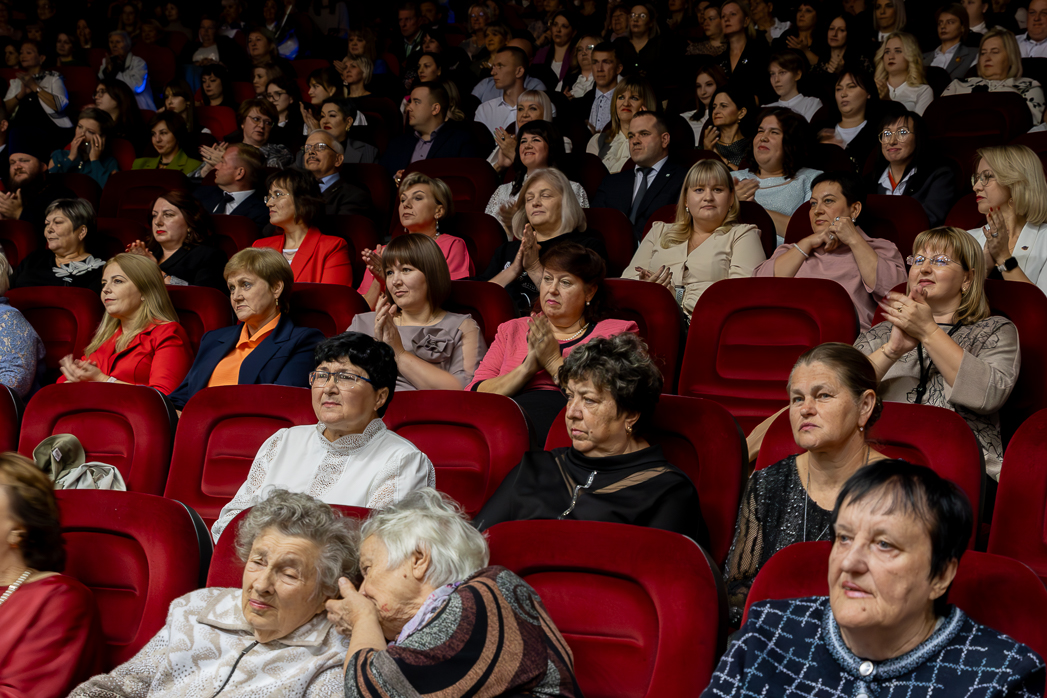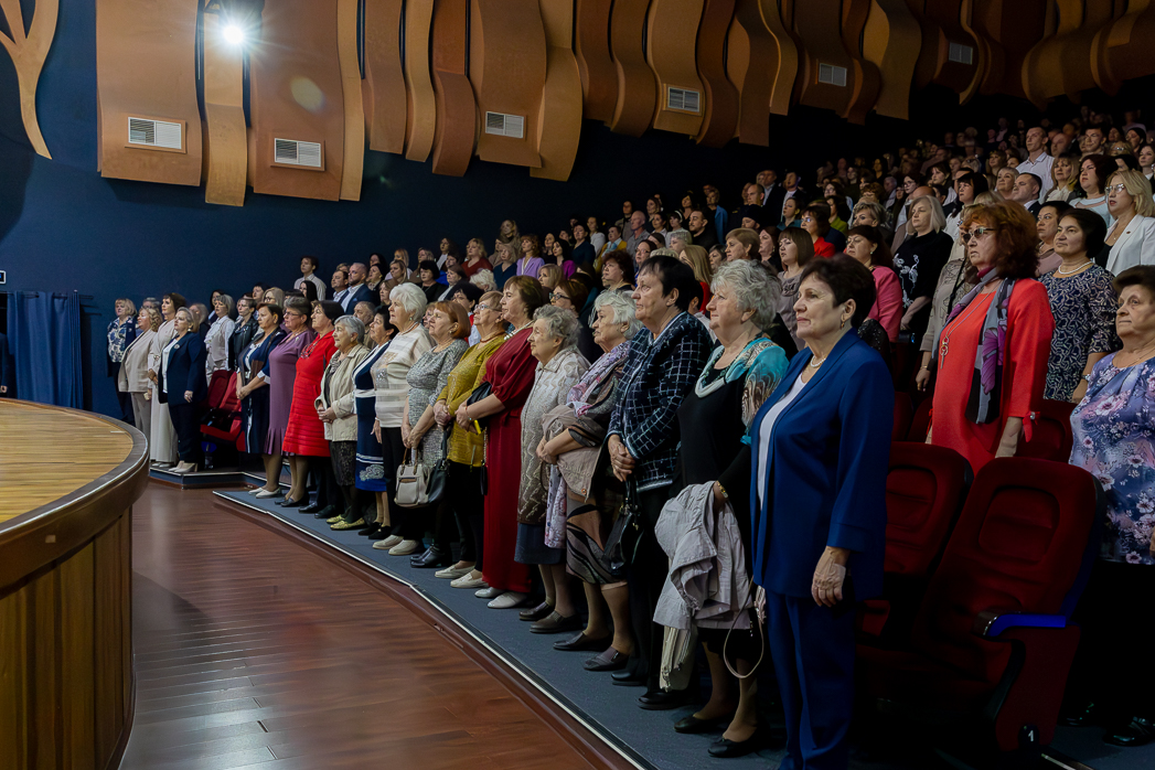 Старейших заслуженных педагогов зал приветствовал стоя. Лучшим педагогам были вручены заслуженные награды – благодарности, грамоты, дипломы различных уровней.