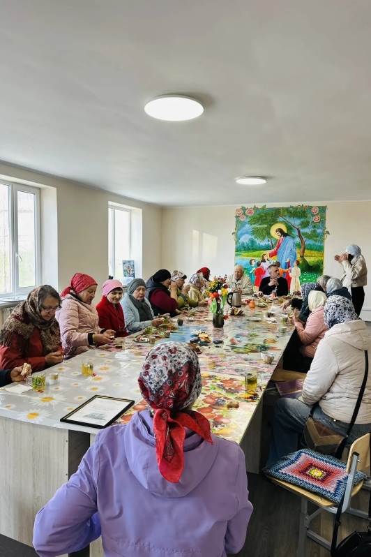 Далее все присутствующие были приглашены в воскресную школу на чаепитие, где в теплой и радушной обстановке прихожане смогли пообщаться с отцом Николаем.