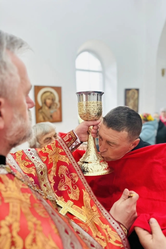 За богослужением многие прихожане причастились Святых Христовых Таин.