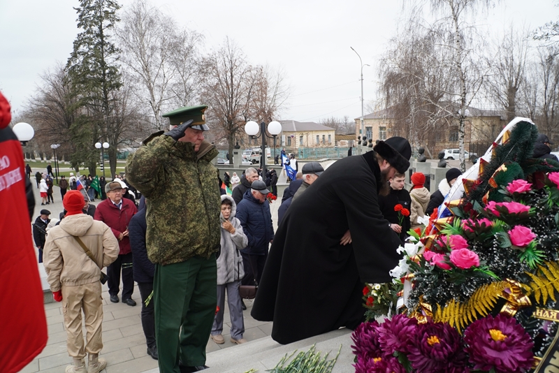 Участники митинга почтили память погибших героев минутой молчания и возложили цветы к мемориалу.