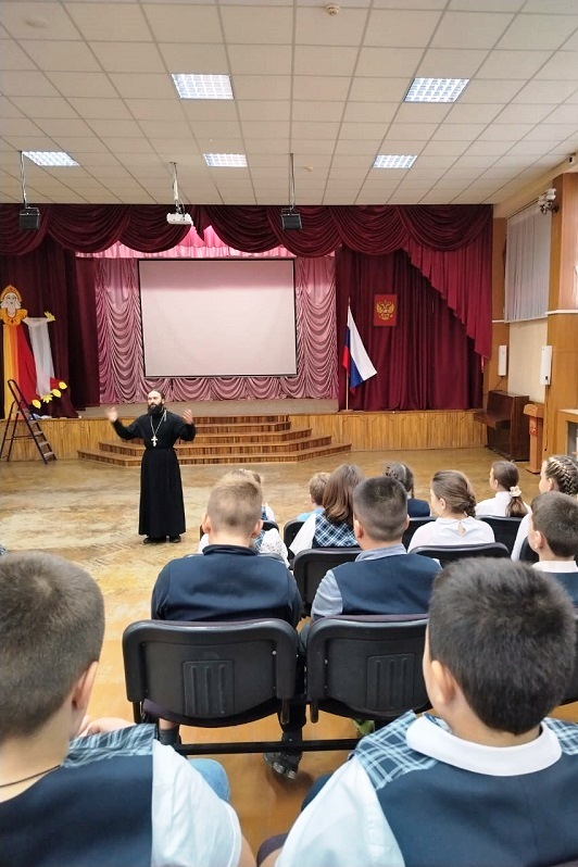 21 октября клирик Свято-Ильинского кафедрального собора города Россошь, иерей Димитрий Уваров, был приглашен руководством в муниципальную общеобразовательную школу № 9.