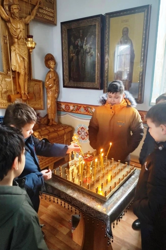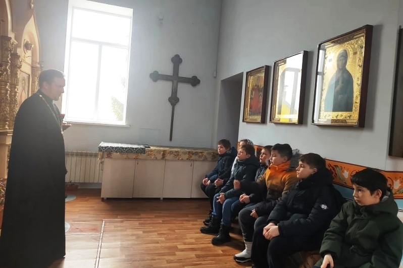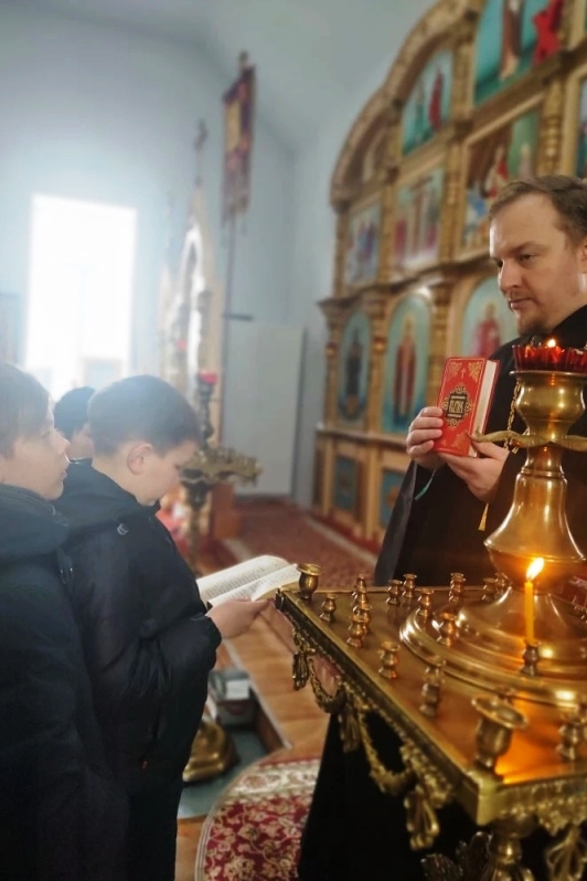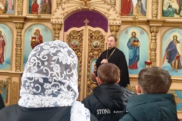 Священнослужитель рассказал историю храма, а также поговорил с ребятами о Великом посте и празднике Воскресения Христова. В беседе также были затронуты темы, касающиеся духовной литературы, что было актуально, так как 14 марта отмечается День православной книги.