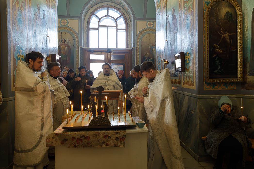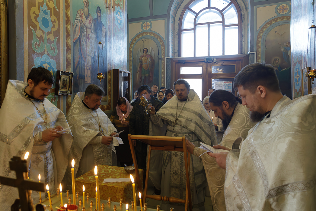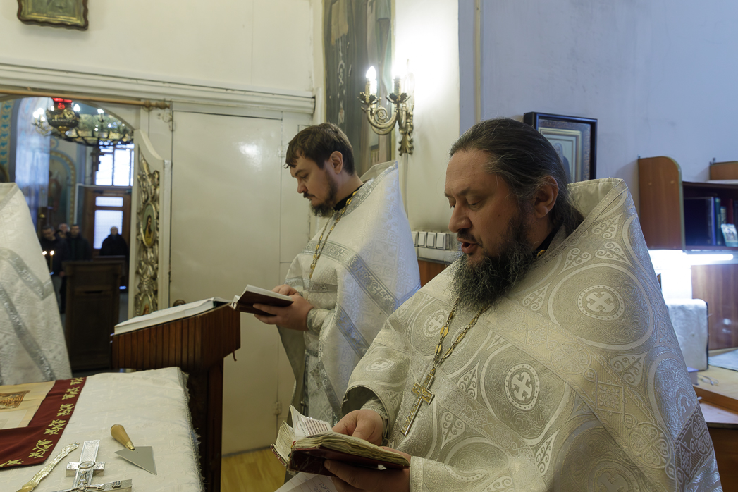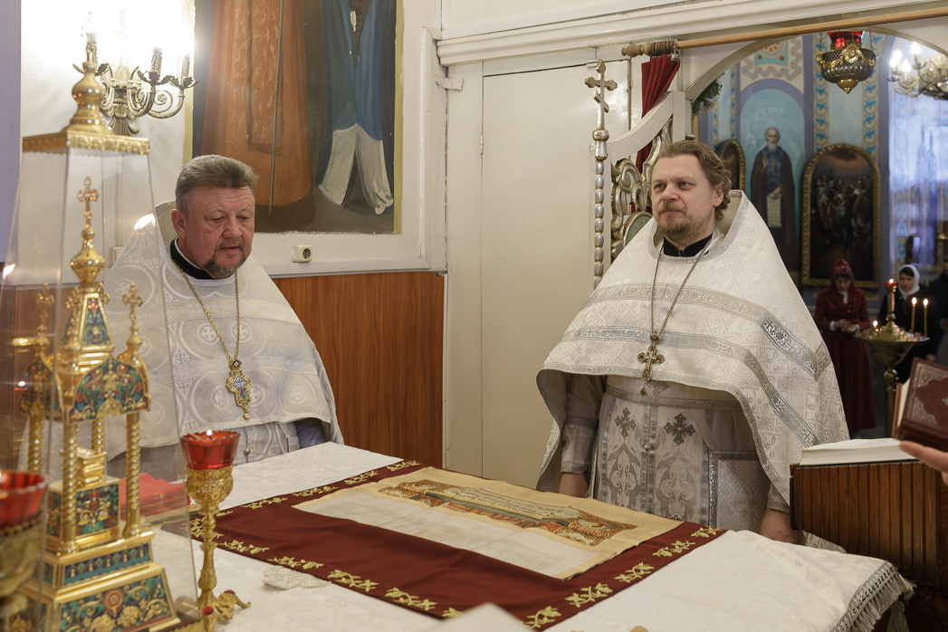Ему сослужили: настоятель храма в честь Рождества Пресвятой Богородицы города Россошь протоиерей Андрей Плугатырев, клирики Ильинского кафедрального собора иерей Димитрий Глушков и иерей Ярослав Гузеев, а также настоятель храма в честь Всемилостивого Спаса города Россошь иерей Алексий Козинский.