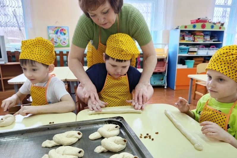 Перед выпечкой птичек старший воспитатель Толкачева Елена Анатольевна рассказала детям о подвиге 40 воинов-христовых.