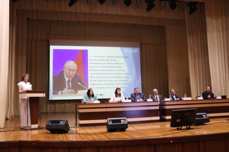 Перед выступлениями спикеров присутствующие посмотрели обращение Министра просвещения Российской Федерации Сергея Сергеевича Кравцова по случаю начала учебного года.