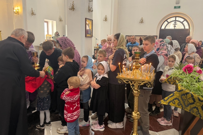 Многие прихожане храма, а также воспитанники духовно-просветительского центра и их родители причастились Святых Христовых Таин.