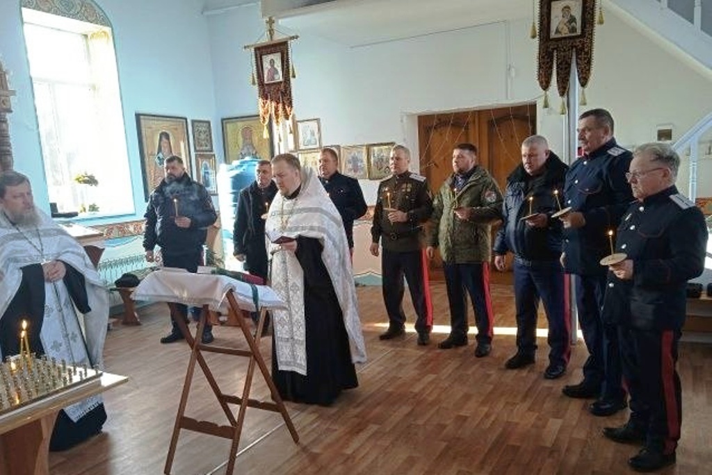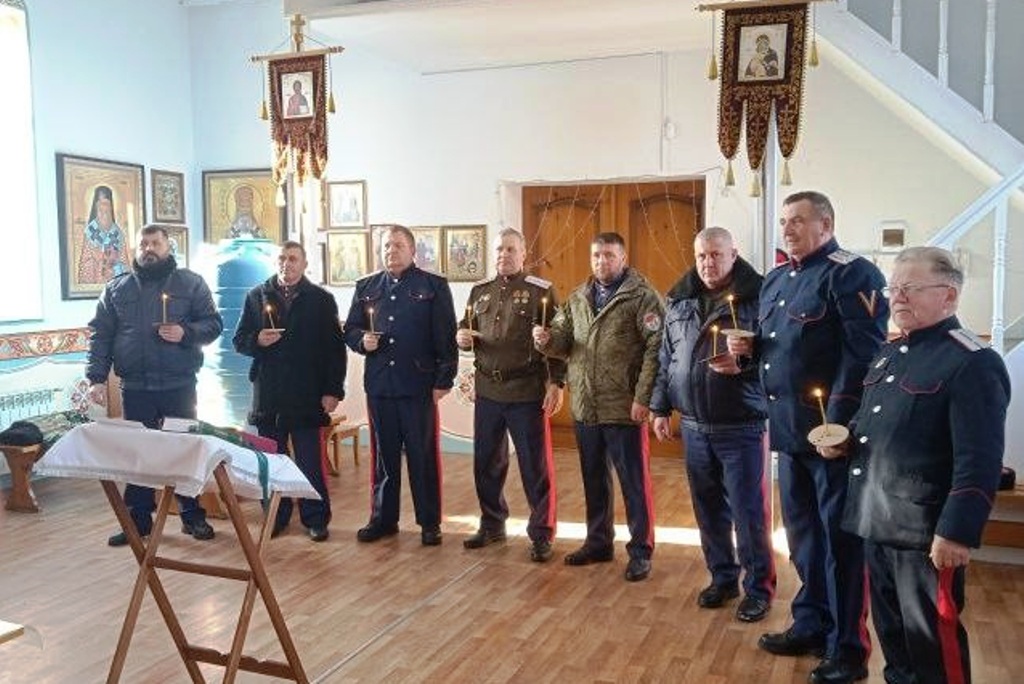 За богослужением вместе со священнослужителями помолились: атаман Ольховатского казачьего округа Виктор Петрович Свертокин и казаки станицы Ольховатской.