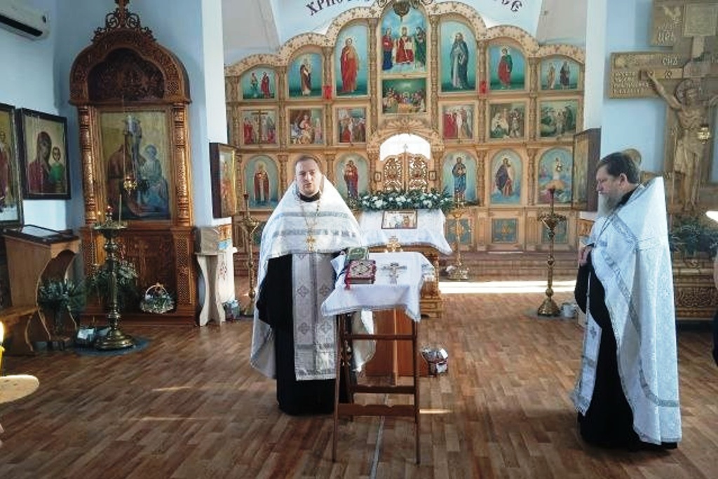 Богослужение совершили настоятель храма в честь Преображения Господня села Заболотовка иерей Михаил Гусарев и настоятель храма в честь Покрова Пресвятой Богородицы села Шапошниковка протоиерей Владимир Бирюков.