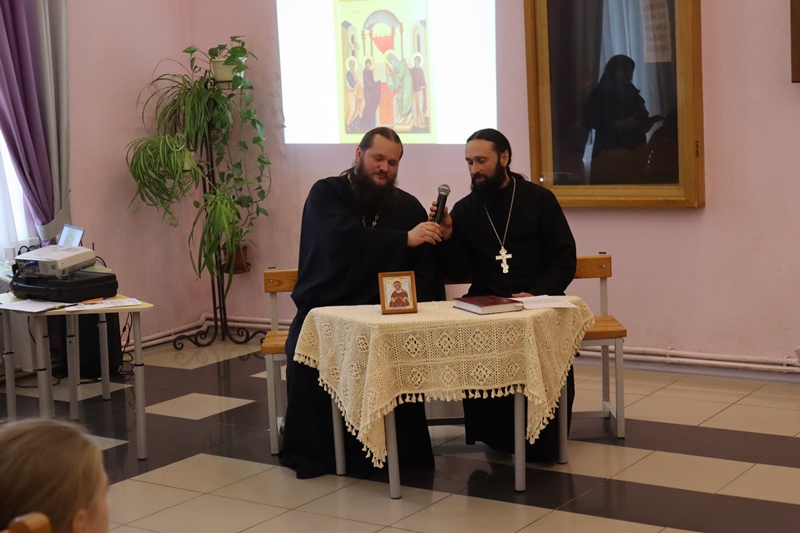 Собеседниками воспитанников воскресной школы стали секретарь Россошанской епархии иерей Иаков Калинин, духовник школы иерей Димитрий Уваров, прихожанки храма Кравченко Мария Михайловна, чья церковная жизнь насчитывает не одно десятилетие, и Алексеенко Вера Михайловна, руководитель и режиссер молодежной театральной студии при театре «РАМС», актриса-ведущий мастер сцены театра «РАМС» г. Россошь.