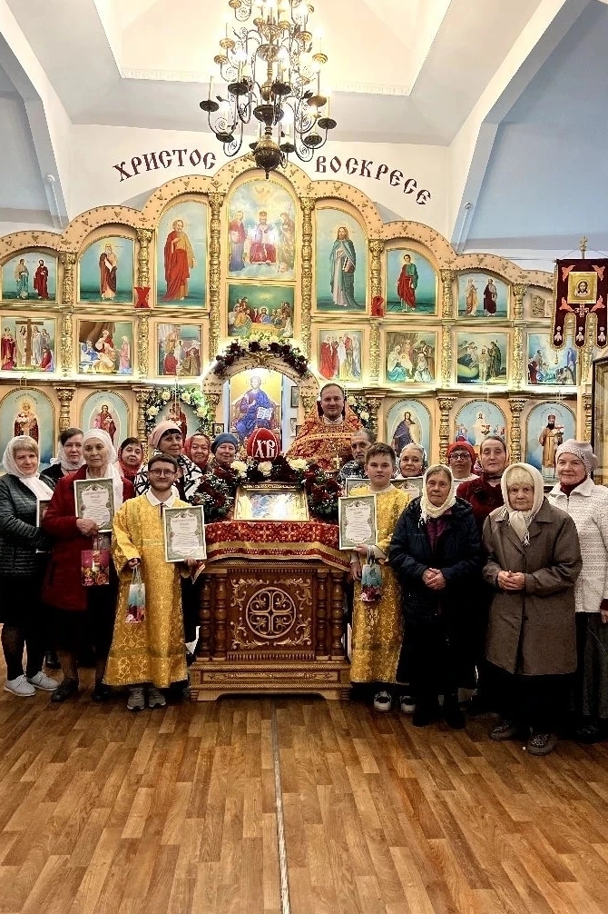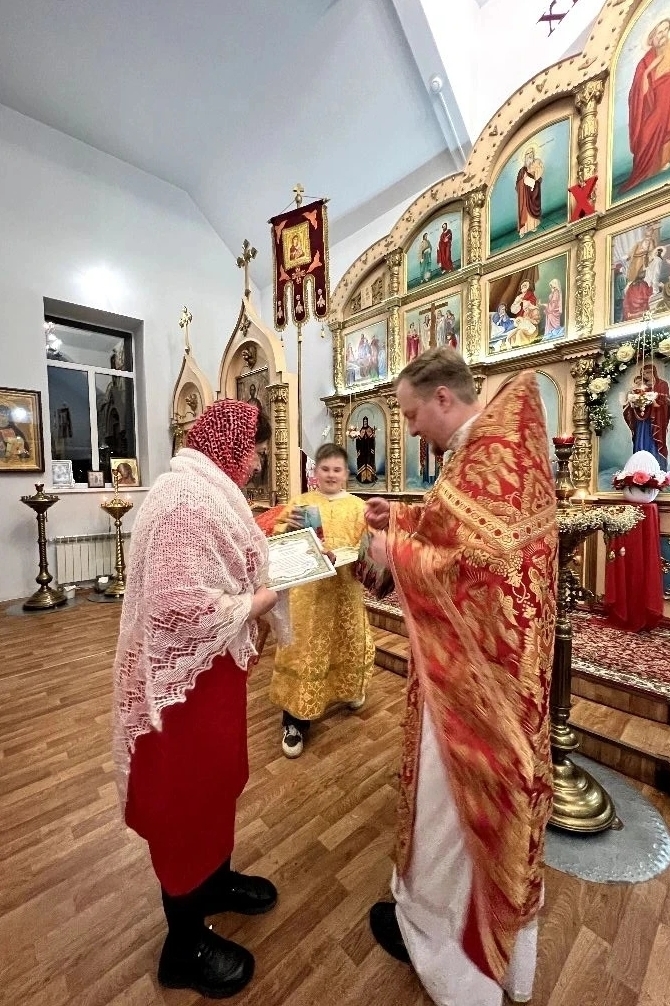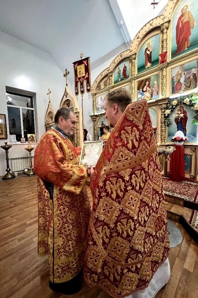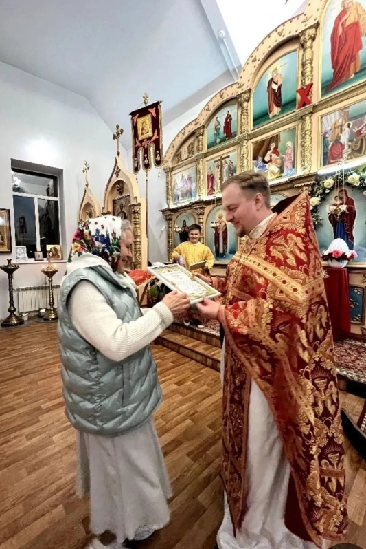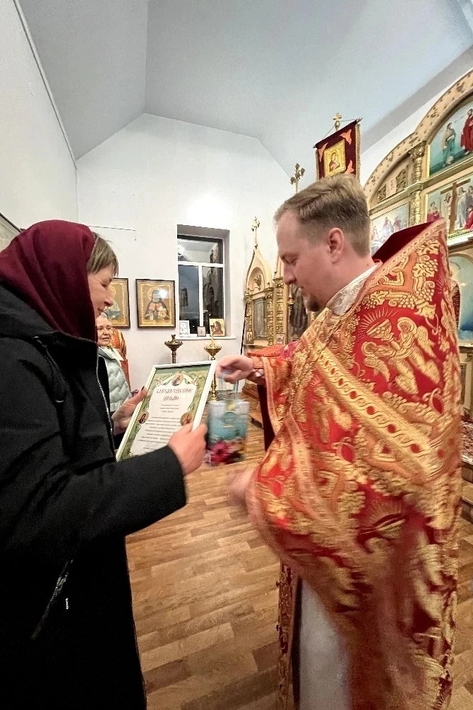 По окончании богослужения отец Михаил вручил благодарственные письма и сувениры старосте храма Юрченко Светлане Ивановне и активным прихожанам храма.
