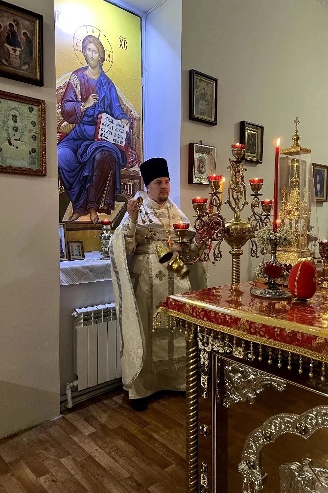 За заутреней настоятелем храма было прочитано слово огласительное святителя Иоанна Златоуста. На сугубой ектении произнесены особые прошения и вознесена молитва о Святой Руси.