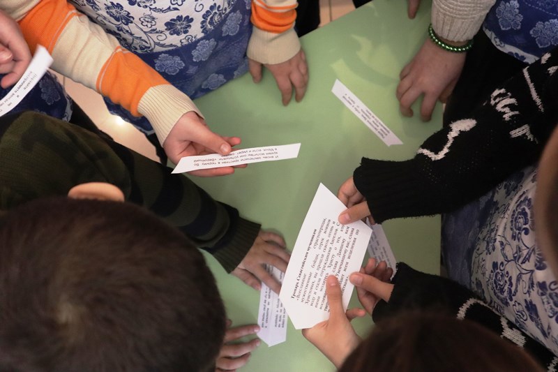 Вначале команды собирали из «льдин» (карточек с фактами) цельную историю подвига: 40 Севастийских мучеников. За пять минут ребята восстановили хронологию и сами сложили мозаику памяти.