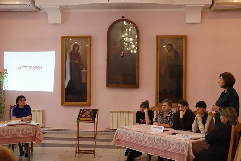 Участники, разделившись на три команды — «Историки», «Филологи» и «Учителя основ православной культуры» — в формате мозгового штурма обсудили актуальные вопросы интеграции библейских текстов в образовательный процесс.
