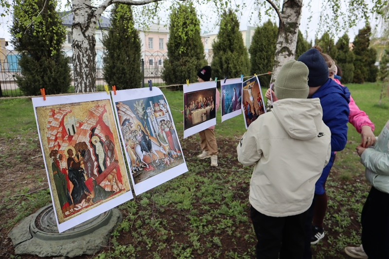 Ребята прошли 7 станций: рассуждали, почему жены-мироносицы не побоялись прийти ко гробу Господа и несли «миро» через препятствия, собирали пазлы картины Караваджо «Уверение Фомы» и пришли к пониманию, что без личной встречи с Господом вера Фомы была бы неполной, на ощупь определяли предметы страстей Христовых, напоминающих нам, как сильно Христос пострадал за нас, водили друг друга с завязанными глазами в «лабиринте доверия», рассуждая, как трудно довериться словам, но вера рождается и через свидетельство ближних.