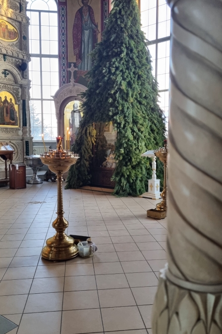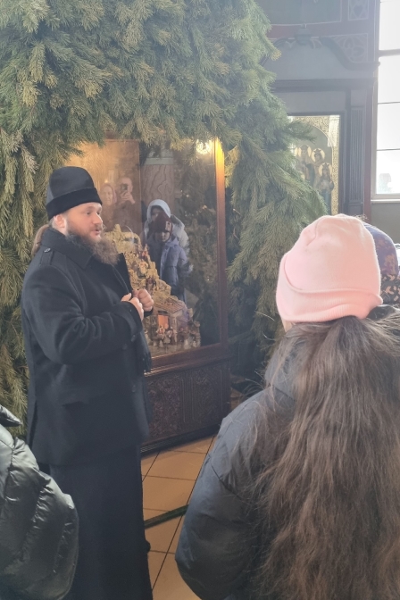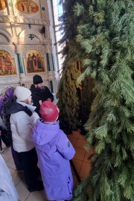 В ходе экскурсии отец Иаков рассказал о святынях, находящихся в нем, и, конечно, о появлении в соборе Неаполитанского вертепа, который величественно украшается в святочные дни.