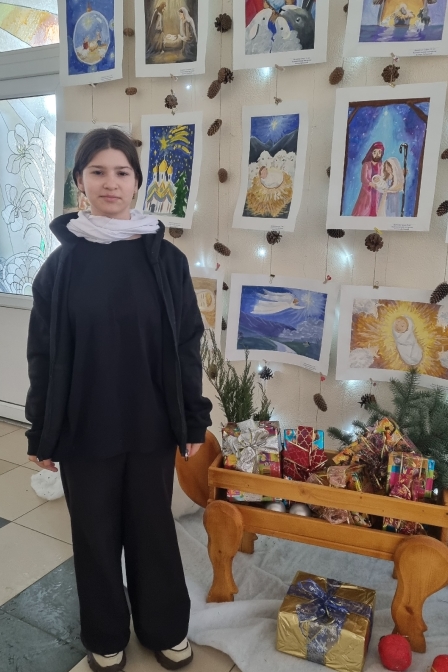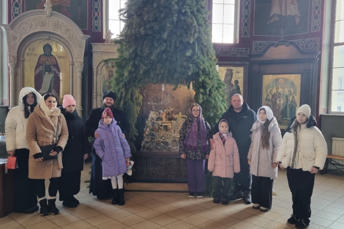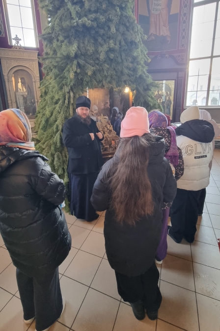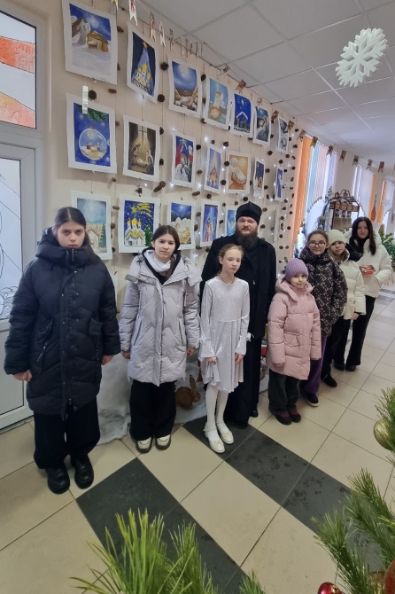 Отец Иаков поблагодарил Ксению Федоровну и ребят за прекрасную выставку, рассказал историю праздника, поздравил с Рождеством Христовым и вручил сладкие подарки, собранные социальным отделом.