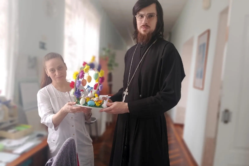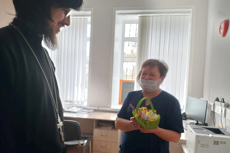 После пасхального молебна священник обратился к собравшимся пациентам и медицинскому персоналу с Пасхальным словом и пожелал всем духовной радости о Воскресшем Господе Нашем Иисусе Христе.