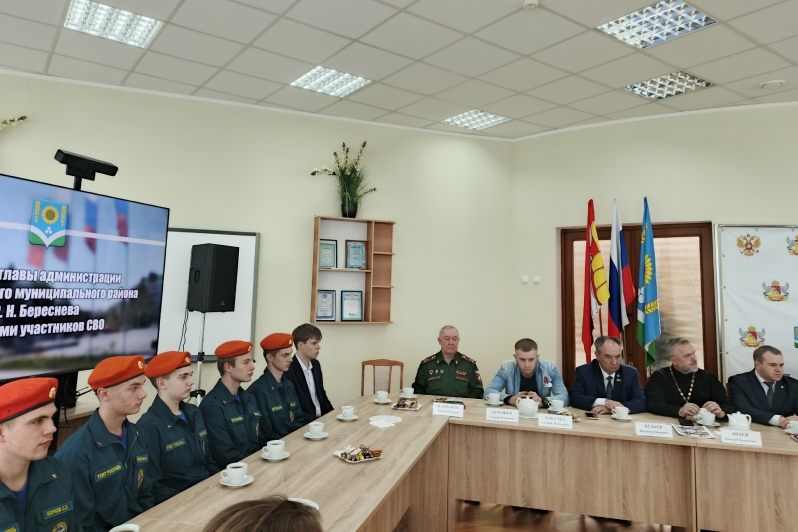 Во встрече приняли участие: глава районной администрации Роман Николаевич Береснев, глава городского поселения – город Россошь Максим Сергеевич Кисель, глава Россошанского муниципального района Владимир Михайлович Сисюк, заместитель главы администрации – руководитель отдела образования и молодежной политики Инна Сергеевна Домнич, председатель Совета ветеранов отдела МВД по Россошанскому району Владимир Иванович Будаев, председатель районного Совета ветеранов Николай Петрович Карионов, главный врач Россошанской ЦРБ Марина Анатольевна Кравченко, представитель фонда «Защитники Отечества» в Россошанском районе, студенты Россошанского техникума.