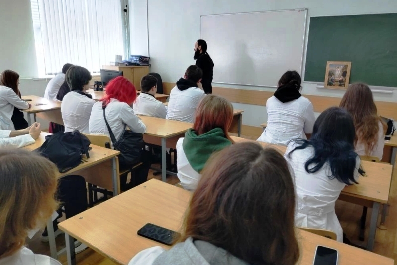 15 апреля помощник руководителя епархиального миссионерского отдела, клирик Свято-Ильинского кафедрального собора иерей Димитрий Уваров посетил ГПБОУ ВО «Россошанский медицинский колледж».