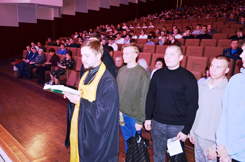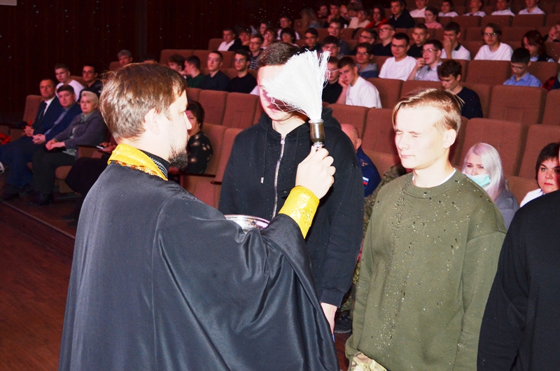 В заключение настоятель храма апостола Павла города Павловска, помощник благочинного по миссионерской работе, иерей Павел Белов совершил краткий молебен и окропил призывников святой водой, призвав Божие благословение на достойное прохождение воинской службы.