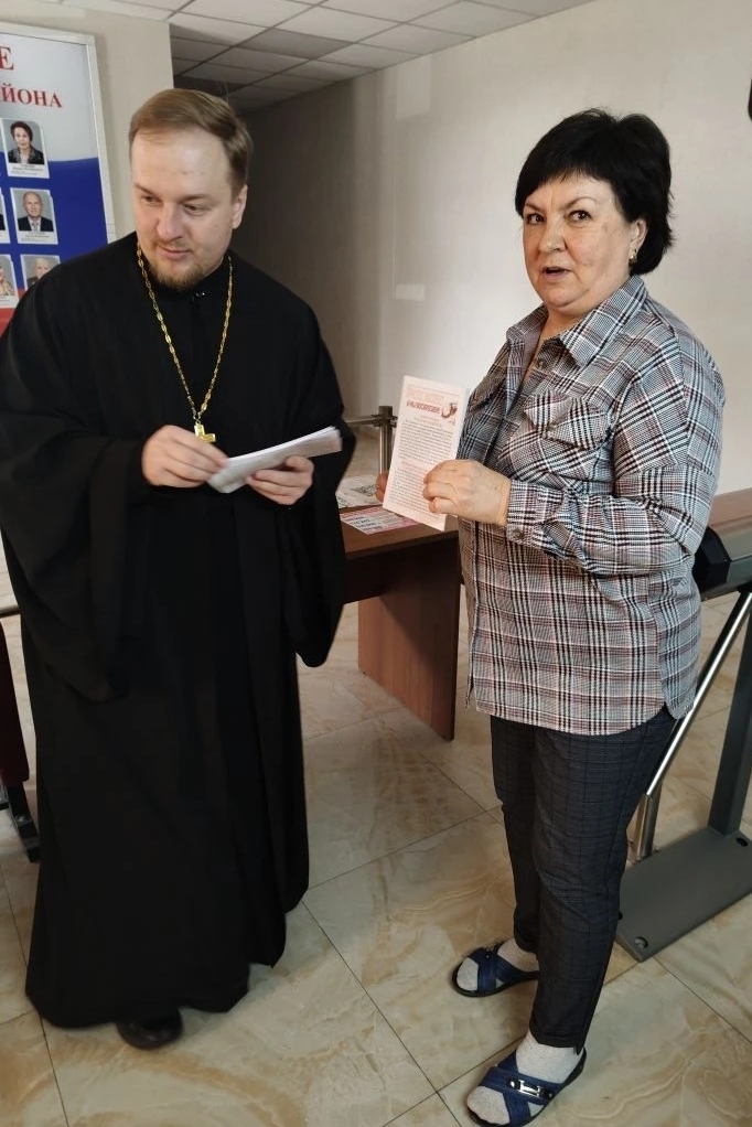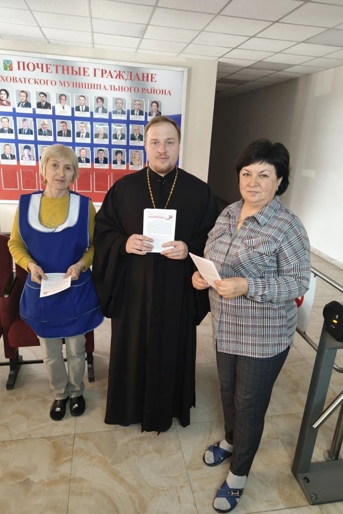 16 апреля настоятель Преображенского храма села Заболотовка, помощник благочинного по миссионерской работе в Ольховатском районе иерей Михаил Гусарев поздравил жителей поселка Ольховатка со Светлой Пасхой и вручил им буклеты, посвященные празднику.
