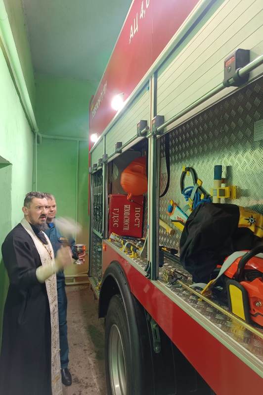 Кроме того, по просьбе командования части отец Артемий совершил чин освящения нового пожарного автомобиля, недавно поступившего на вооружение Каменской ПСЧ.