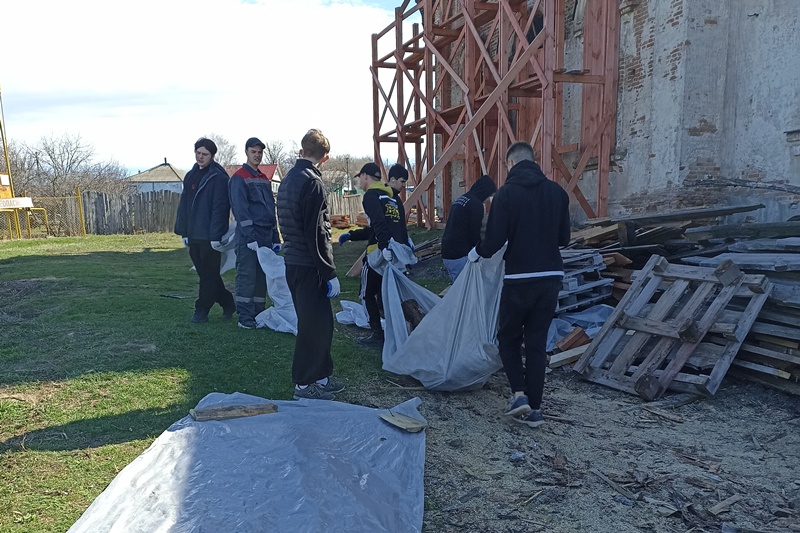 Волонтеры Острогожского многопрофильного техникума под руководством помощника благочинного Острогожского церковного округа по молодежной работе Людмилы Александровны Мостовенко приняли участие в уборке территории возле руинированного храма в честь Пресвятой Троицы.